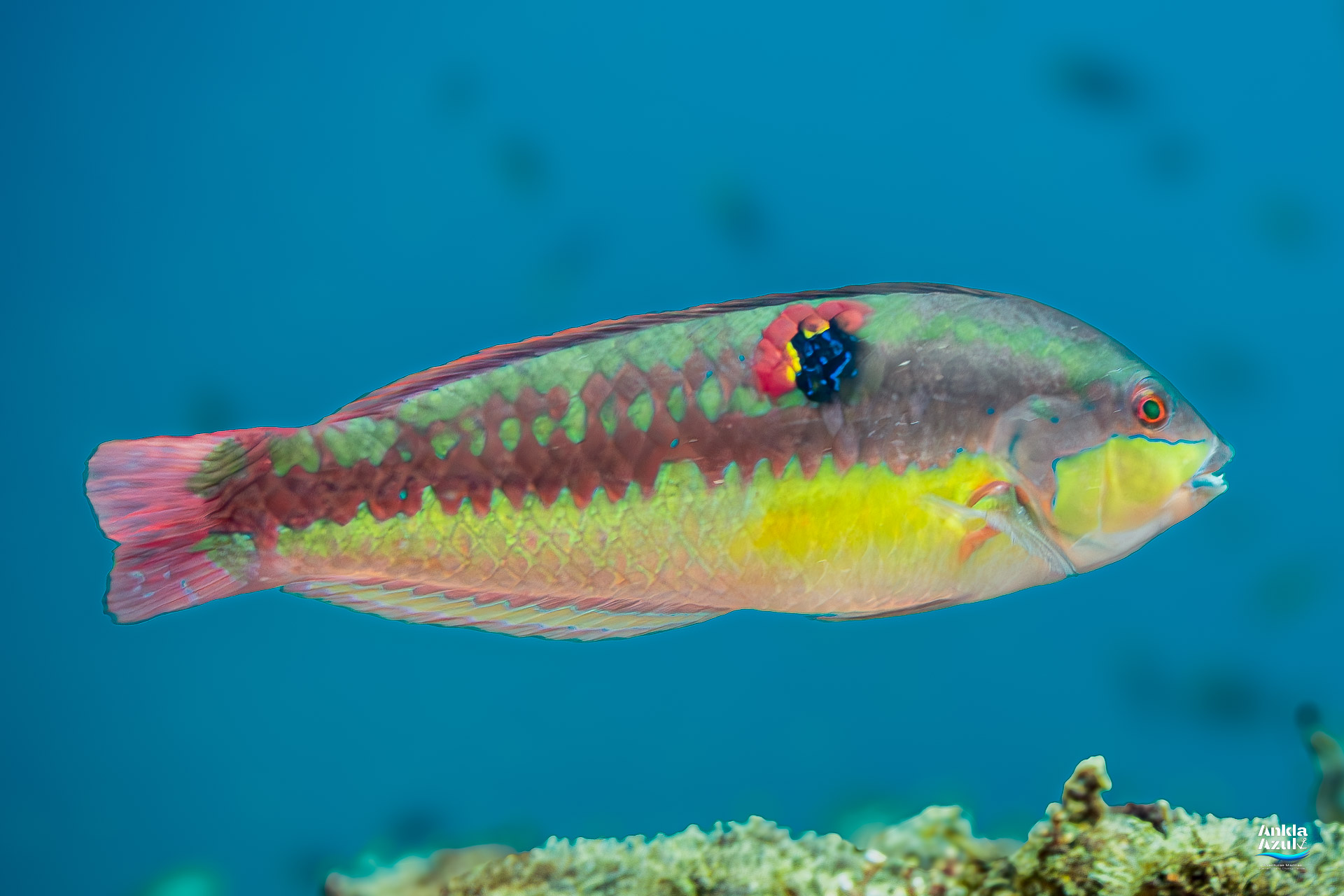 - The "Wound": Terminal Phase males (like the first picture) have a distinct red and blue blotch on their side, just above the pectoral fin. It looks exactly like a fresh wound, which is how they got their name.